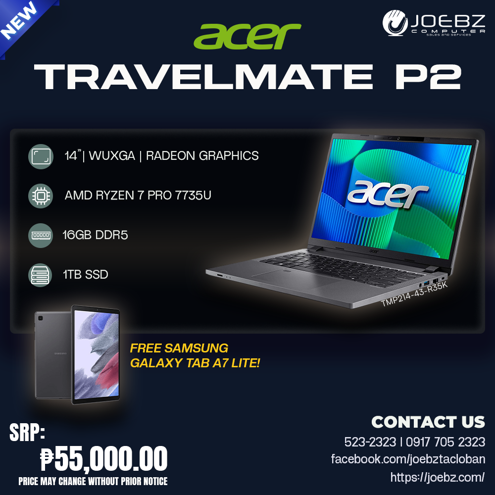 Acer Travelmate P2 14 TMP214-43-R35K |Ryzen 7 Pro 7735U | 16GB DDR5 | 1TB SSD | FREE GALAXY TAB!